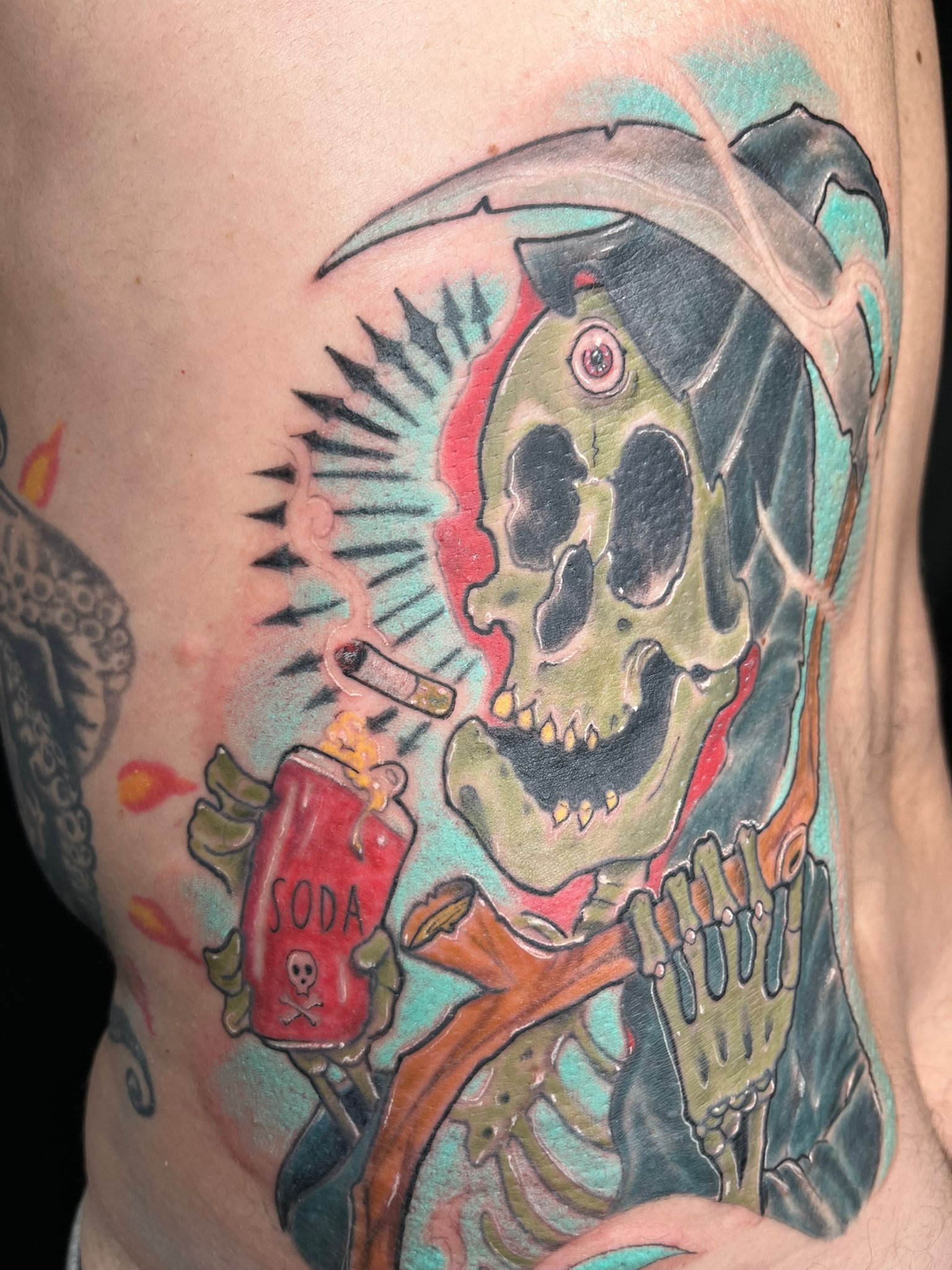 tatuaggi in stile graffiti, newschool, cartoon e bianco e nero, oltre a creazioni più classiche o colorate. Tutti i disegni sono progettati per adattarsi alle forme del corpo e per mantenere nel tempo un’elevata definizione e brillantezza dei colori.